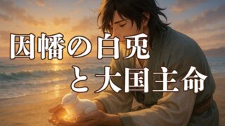 因幡の白兎と大国主命の神話は、古事記に描かれる“優しさと徳”の象徴的な物語です。傷ついた白兎を助けた大国主命は、その慈悲心によって国づくりの神へと成長していきます。