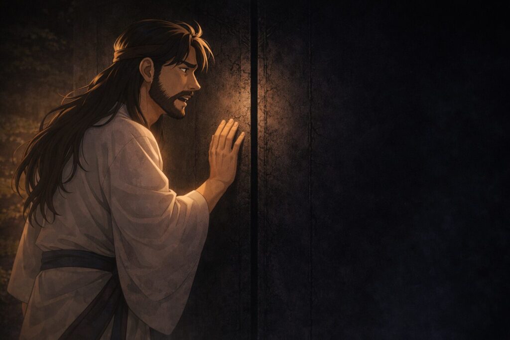 伊邪那岐命はうなずき、闇の中で妻を待ち続けました。