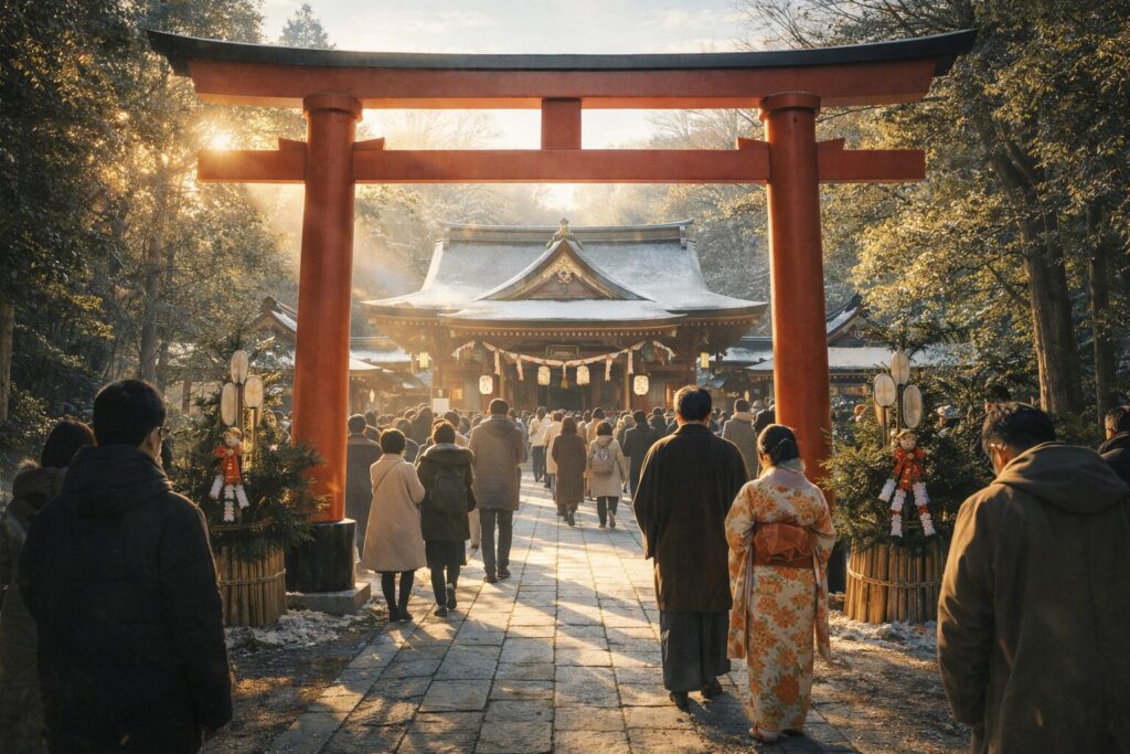 初詣とは、新年を迎えて初めて神社や寺院に参拝する日本の伝統行事で、旧年への感謝と新年の幸福を祈るために行われます。