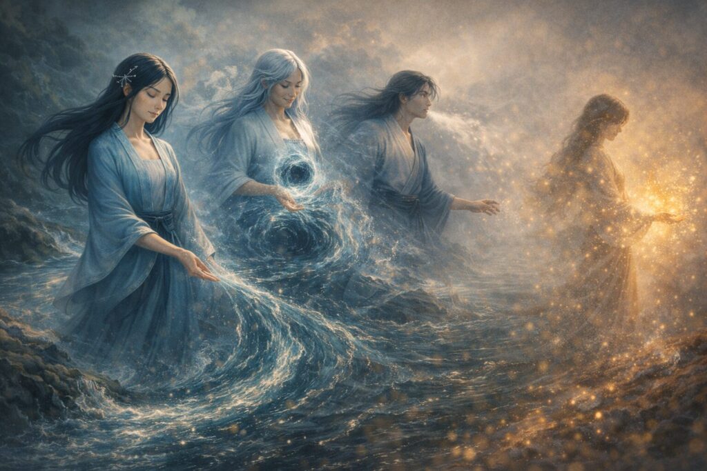この四神の働きは、川 → 海 → 異界という流れをなぞることで、自然界と人間の心身の浄化のプロセスを象徴しています。