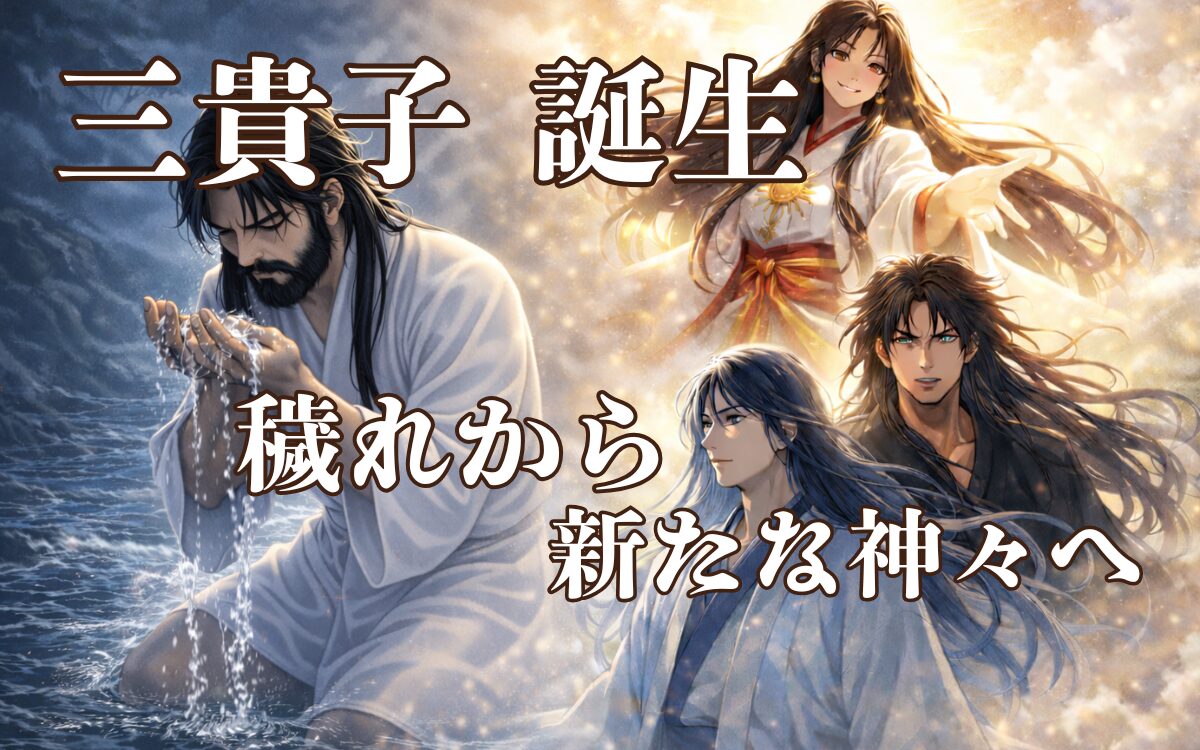 さらに、天照大神・月読命・須佐之男命が誕生し、物語は「三貴子」の話へと進んでいきます。
